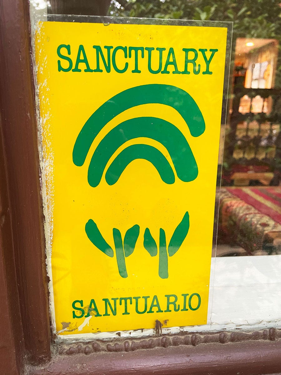 Wandering around the sprawling Tudor-style family home, I came across a window decal, attached from years ago when the sanctuary movement, as liberation theology advocated, responded to the tens of thousands of Central Americans seeking asylum in the 1980s. It seemed an appropriate metaphor for a home that had sheltered years of memories, changes, and love.
